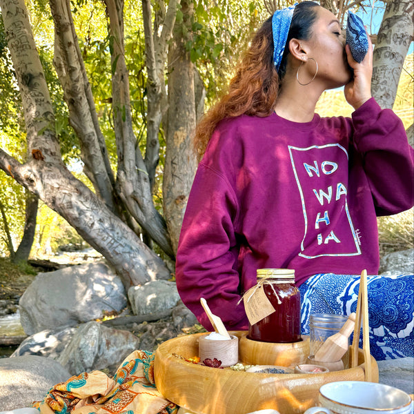 No Wahala Ankara print Crewneck sweatshirt with matching Ankara stretch headband.
